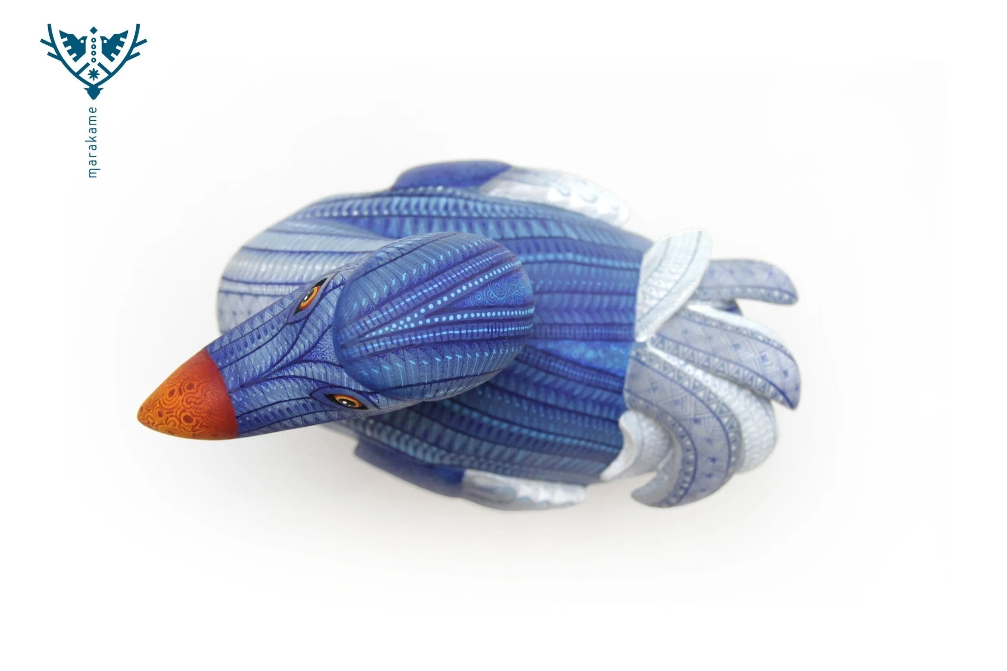 ◇ Técnica: Pintado a mano sobre talla de madera de copal (Bursera spp.).